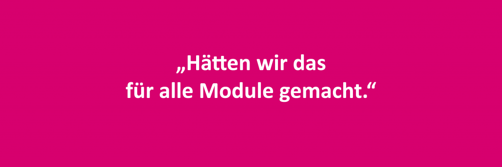 „Jetzt ist mir klar, warum dieses Teilprojekt so gut dasteht. Hätten wir das doch für alle Module gemacht.“